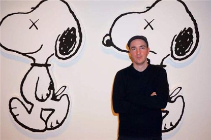 首先,这与KAWS 自身的特质有关。KAWS 的流行与人气绝非是一朝一夕速成的,而是伴随着潮流文化的文化形态生长、积累而成。我们时常能见到这个拥有着双X骷髅头的玩偶与史努比、米老鼠、辛普森一家融合在一起,有着特别的造型,他所创作的超大型雕塑以及强调线条与色彩的硬边绘画被大众所熟知。其创作的形象融合当下流行的卡通人物元素,有着浓厚的波普艺术的风格气息,它既拥有着过去与当下的时代精神,也同时以现代艺术的形式在潮流圈以其独具标志性的风格,变成了家喻户晓的名字。