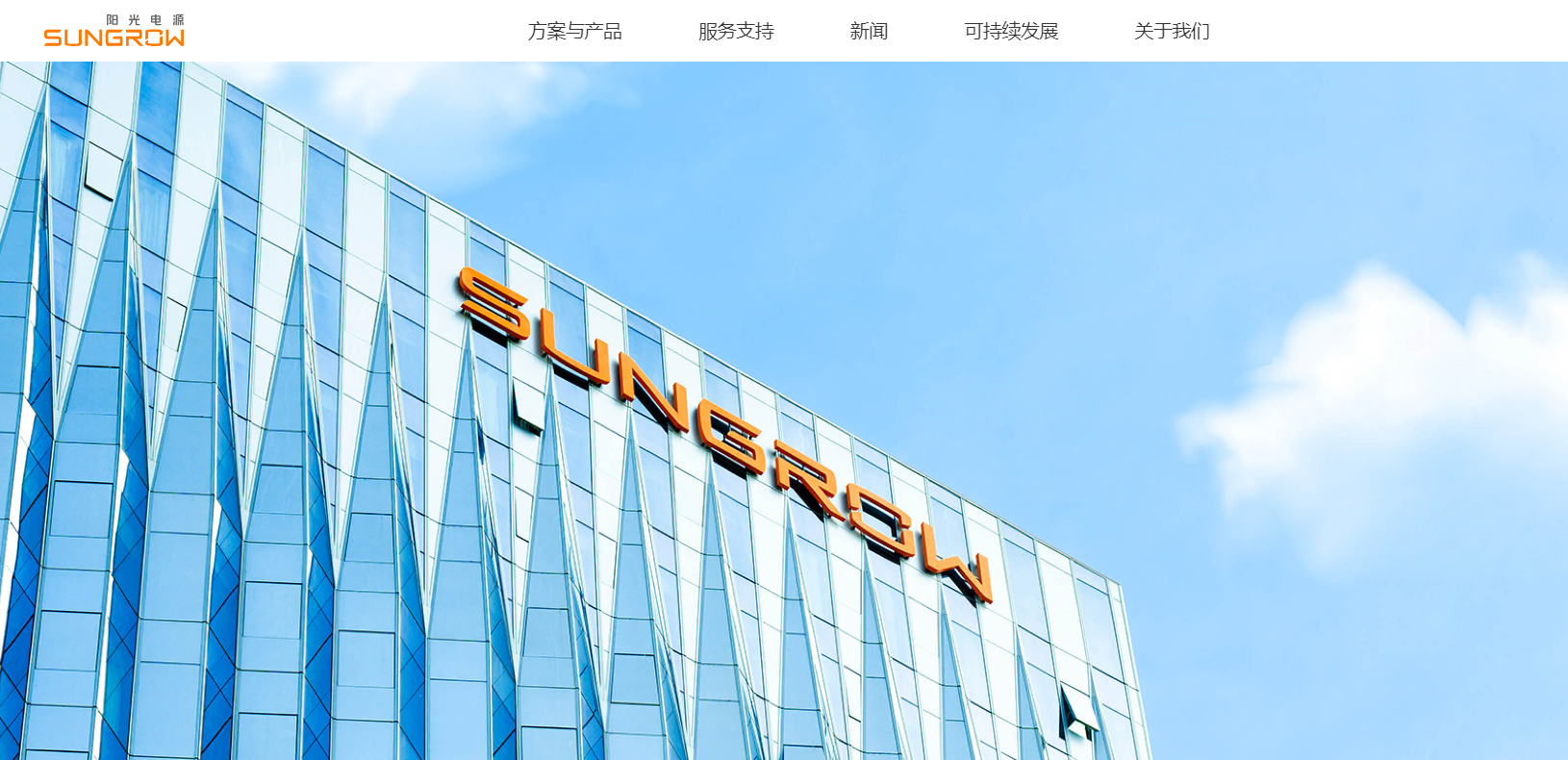 Logo由字母“SUNGROW”构成,延续了早期的“SUN”(阳光)与“GROW”(成长)组合,强调“不辜负每一缕阳光”的行业属性,以及“与客户共同成长”的理念。