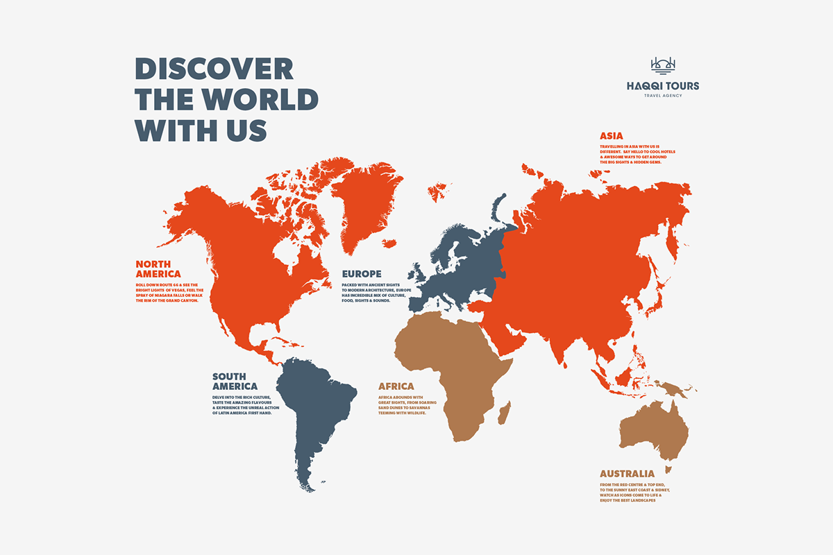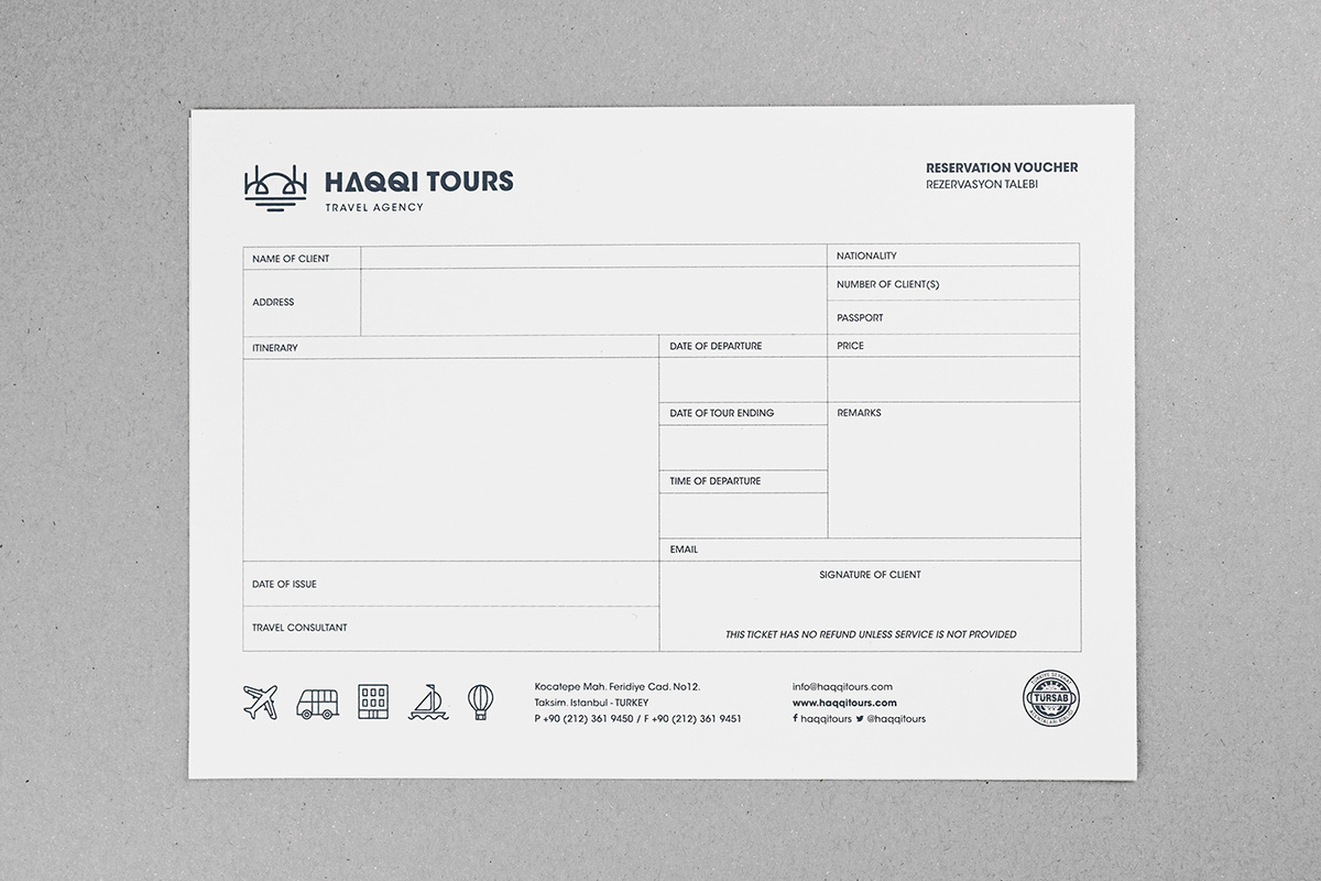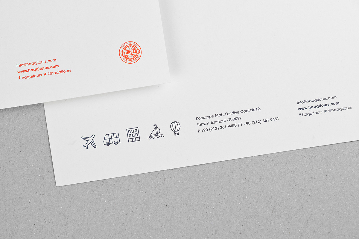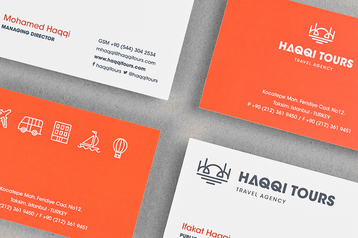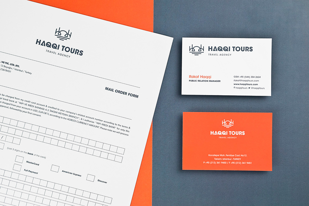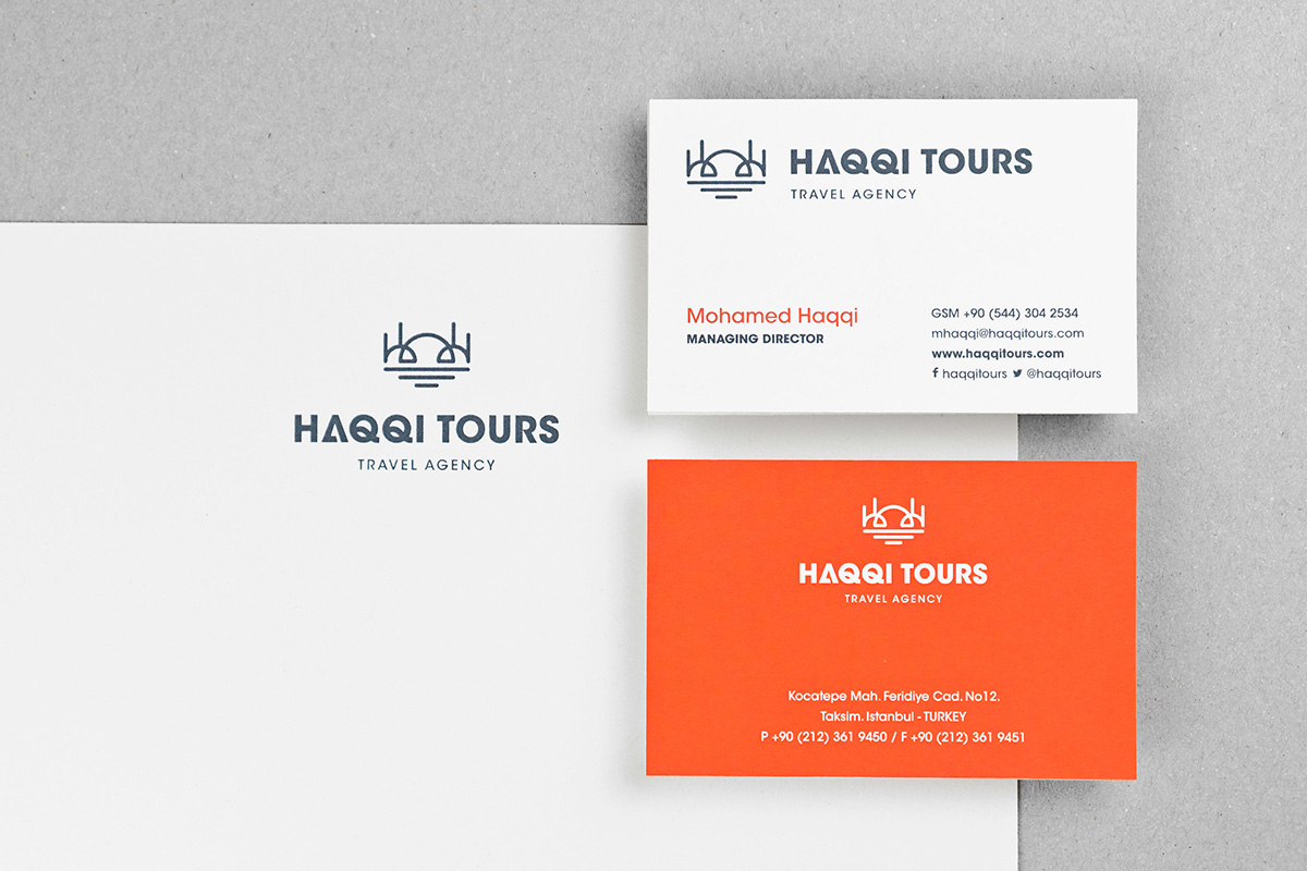 旅游行业VI形象设计:Haqqi Tours是土耳其入境旅游经营者,提供观光旅游和其他类型的以假期为导向的“体验”。 自成立以来,他们已为全球数十万名旅客,企业客户和旅行社提供了伊斯坦布尔和土耳其的高品质游览和住宿。总经理Mohamed Haqqi除了提供服务目录和各种活动的形象外,还赋予我们新的公司形象。 我们的同型工作模式象征着该国两个著名的旅游标志:博斯普鲁斯海峡和圣索非亚大教堂。