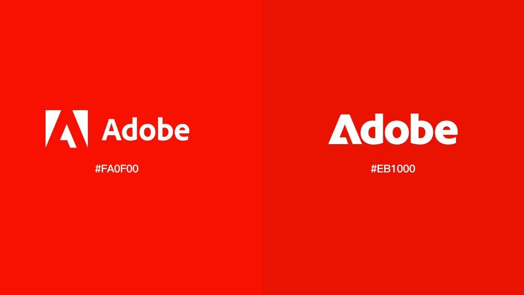 另外,我们也注意到,新旧两个版本除了字体和图形有所变化外,其标志性的红色主色调也存在明显的区别。之前的红色(#FF0000)更为明亮和鲜艳,给人一种充满活力和强烈的视觉冲击感;而新版红色(#EB1000)相对来说降低了亮度,色调更加深沉和内敛,这可能反映了Adobe希望传达出一种更为成熟、稳重的品牌形象。