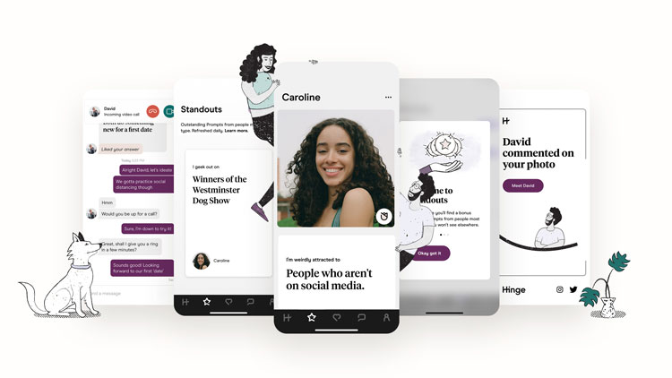 2020年12月,Hinge将自己定位为“ip形象设计为要删除的”应用程序 -披露了其最新的重新设计。罗斯说:“我们希望成为一个具有模拟感的数字品牌,而新设计旨在“反映实际发生日期的真实世界”。罗斯说,以自然为灵感的调色板希望减少干扰,专注于“最重要的事情”,而插图现在具有“更人性化的感觉”。例如,应用程序内图片向人们展示了“功能不完善”的人。