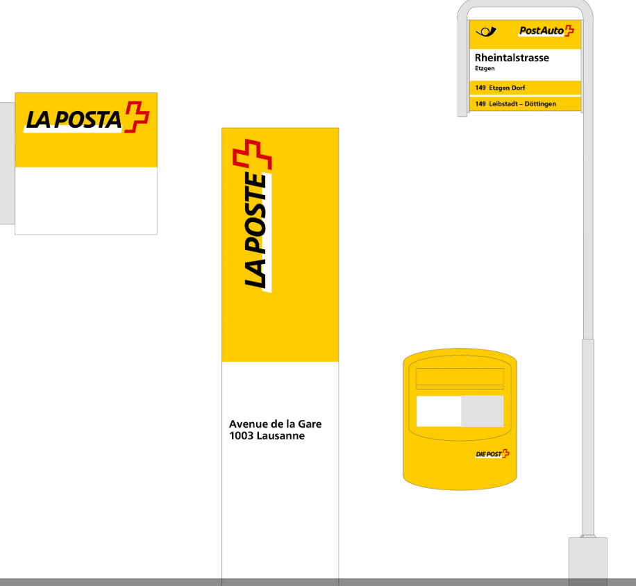 瑞士邮政为纪念成立175周年,从2023年开始使用全新的标志。品牌形象升级后的新标志由抽象化的红色瑞士十字和一个黄底黑字的「P」组成,黄色仍然是瑞士邮政标志和整个品牌的主要色彩元素新标志不仅将瑞士各语言区域(德语、法语、意大利语和罗曼什语区)平等地连接起来,还反映了自快速数字化以来瑞士邮政所经历的进一步发展。邮政号角是瑞士邮政不可分割的显着标志之一,在此次品牌更新中,该符号不会消失,将有超过2200辆汽车醒目地展示这一特色符号。