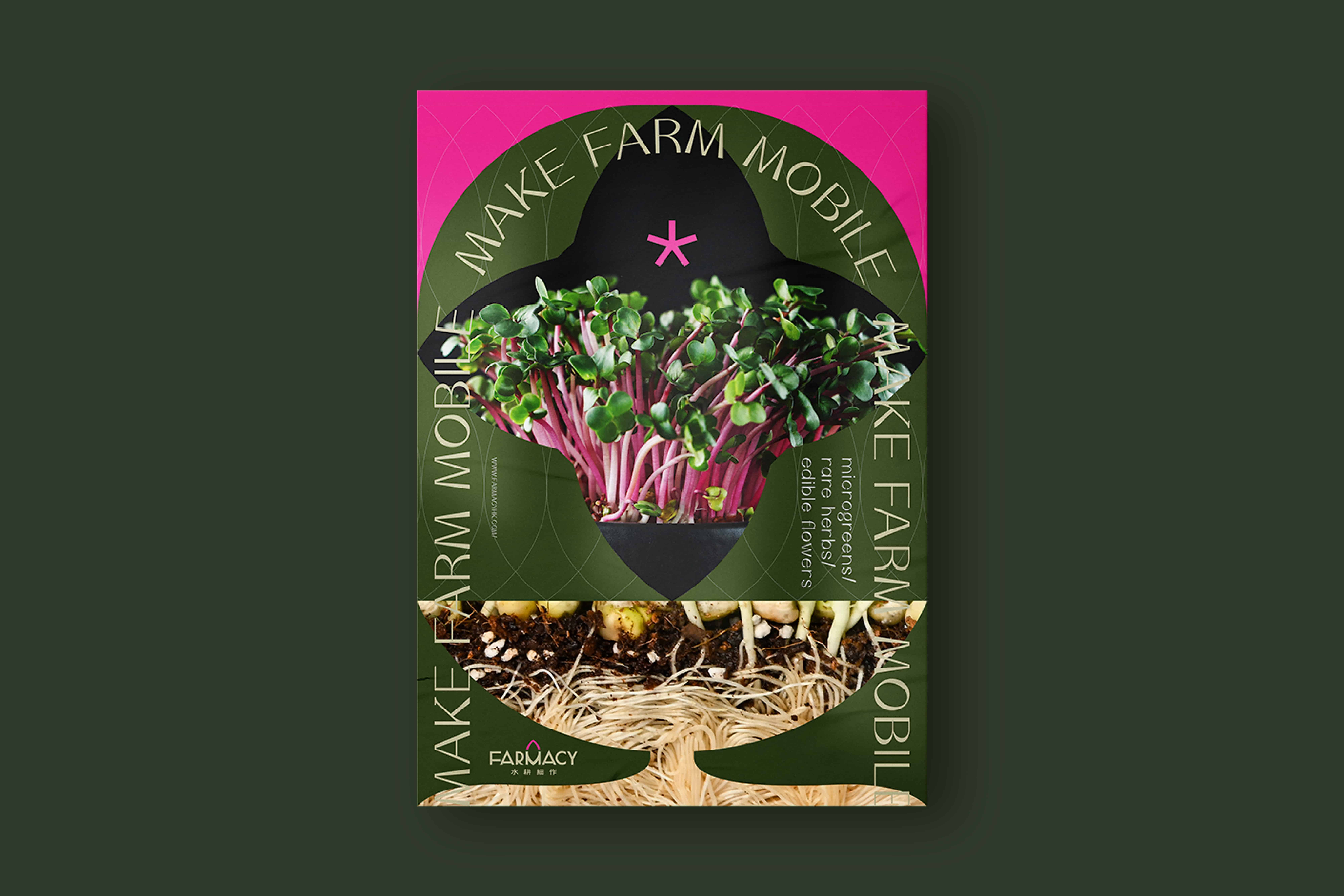Farmacy的新品牌颜色是绿色+粉红色。绿色代表植物,粉色代表发光的光芒,而这种颜色组合意味着Farmacy试图打破规则,创造了亚洲第一个移动店内农场。当Farmacy开始其B2C商业模式时,这种引人注目的颜色组合也很有帮助,有助于它获得更多认可。Farmacy不受空间或位置的限制。因为这个“移动”功能是Farmacy与其他店内农场的最大区别,所以我们在标志中强调“移动”,同时也带出了品牌理念:“让农场移动”,人们可以随时随地享用新鲜蔬菜。我们在“M”的顶部创建了一个叶子图像。“M”与叶子一起,创造了一个火箭形象,象征着植物和品牌的动态和快速生长。