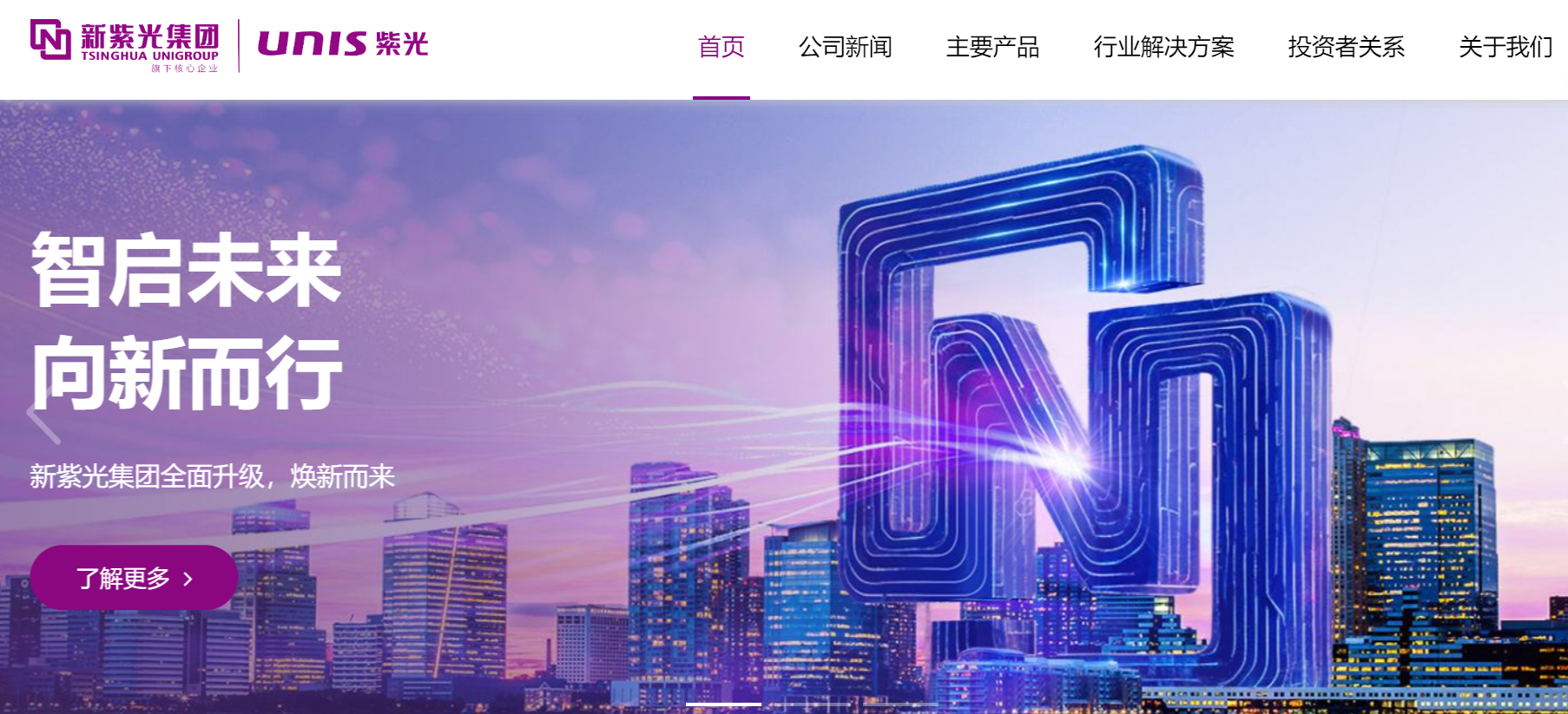 紫色作为主色调,紫色通常象征着高贵、神秘、科技感,与紫光股份在 IT 领域的高端定位和科技创新形象相契合。