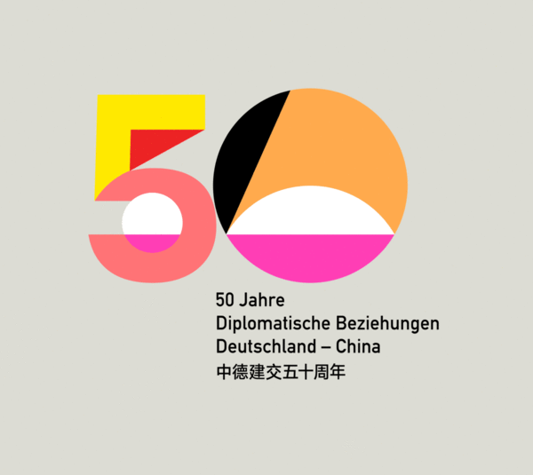 今年年初,德国驻华大使馆通过微博等媒体平台发布了中德建交50周年纪念LOGO。该LOGO由设计师及艺术家何见平设计完成。在他的创作中,把构图放在了中心位置,体现了两国之间的协定。 它基于一个稳固的外交关系。数字元素50的排列强调了构图的清晰度。此外,数字闪耀着霓虹色,凸显了周年庆的喜悦。