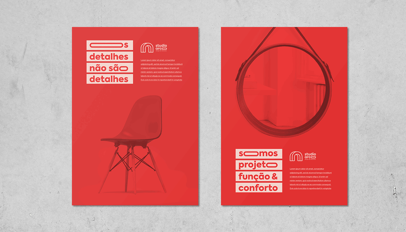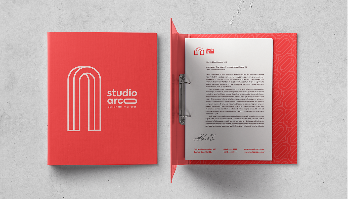 Joinville的室内设计公司VI形象设计项目。对于此项目,拱门被定义为视觉识别的主要元素,标志设计是建筑和设计中使用的一种形式。该元素同时涉及几何和灵活性,与通道和开口的概念相关,从内部到外部为中间。