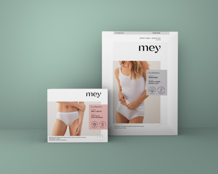 Mey认为自己是优质男女内衣的领先提供商之一。直到1984年,只有女性内衣以Mey品牌生产。该公司现在更加多元化,在德国,葡萄牙和匈牙利的五个地区生产。根据Mey老板Matthias Mey在“ DergründeFaden”播客中的说法,该品牌的核心已经从以前的经典演变为“创新,苛刻和负责任”。