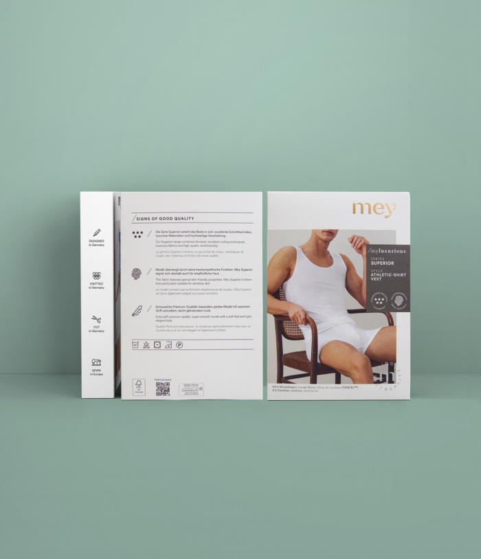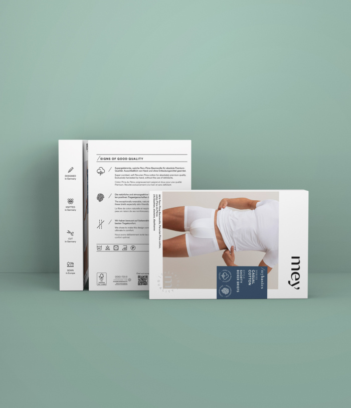 新闻稿摘录:“在开发新包装期间Mey的咨询服务成为焦点。其结果是,由于许多透明的见解,包装为零售商和客户提供了可观的附加值。除了特定于系列的颜色编码系统和USP图标在前面的位置以外,还集成了其他信息,例如认证印章和QR码,可深入了解产品的生产链和功能。此外,进一步减少了塑料的使用。经典产品系列不再以塑料袋包装,而是以FSC认证的纸箱包装,回收率很高。修改后的包装系统不仅越来越清晰,而且反映了Mey产品的价值和高质量标准。”