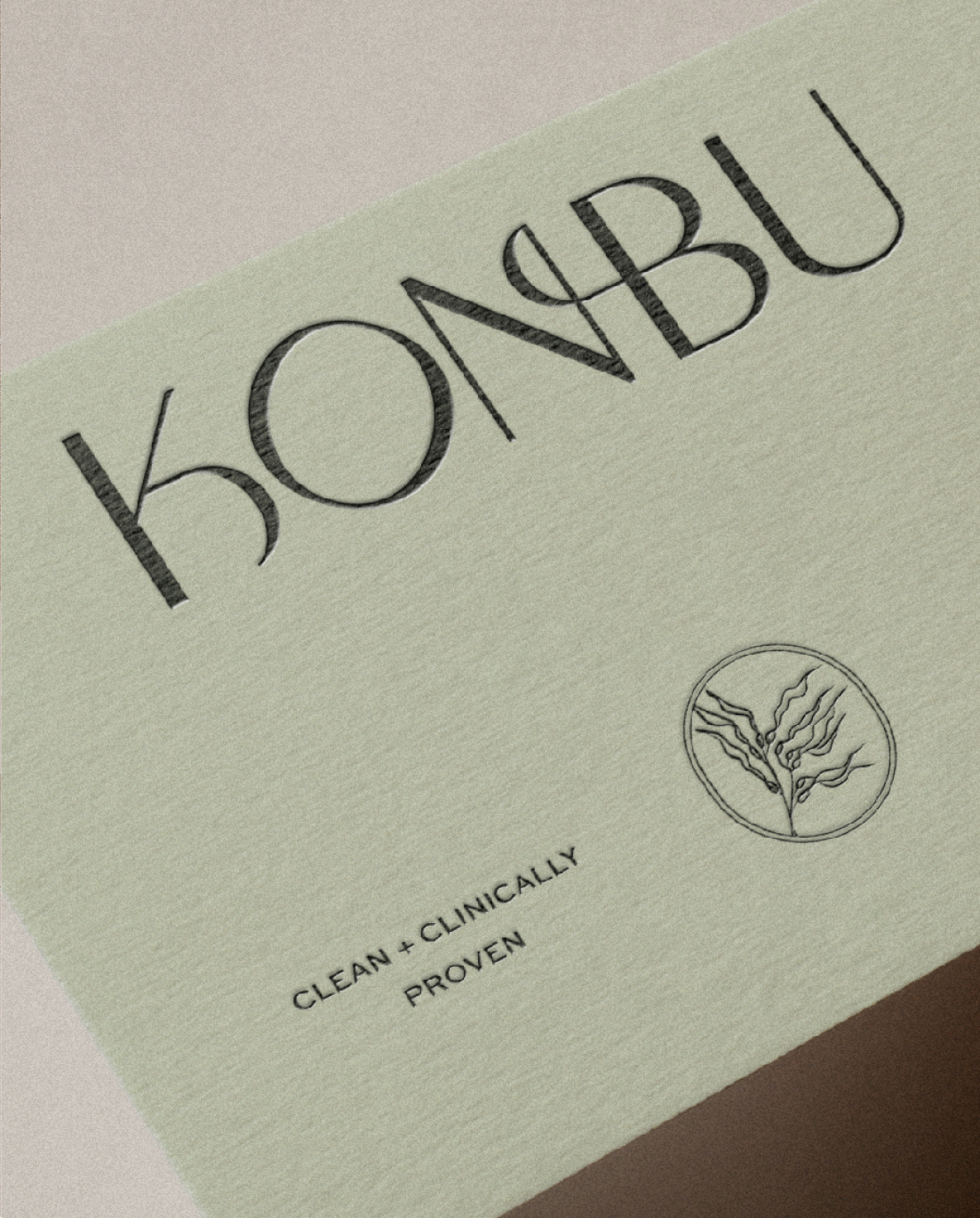结果是干净,豪华的品牌ip形象设计,最重要的是唤起人们对海洋的清洁感和与海洋的联系。我们通过使用海洋风格但又中性而诱人的调色板来做到这一点。对于原色,我们选择深绿色和浅绿色来唤起朴实的感觉,选择美丽的乳白色和黑色来唤起奢华的感觉,同时也有助于脱颖而出。对于Konbu的徽标标记,由于其强大的性格和复古感,因此选择了漂亮的大写字体。我们对字体进行了定制,以使其真正独一无二。除了文字标记外,我们还创建了一个可单独使用的符号。线条艺术插图是手绘的海带画,以融入那些极简主义的氛围。
