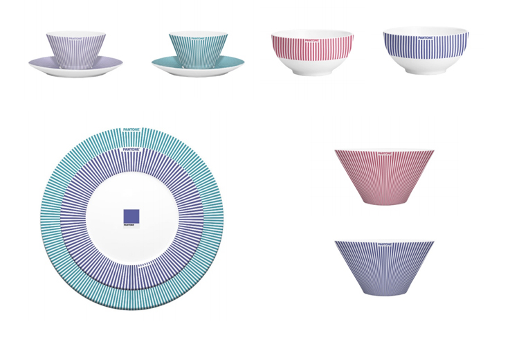 杯子,碟子,碗和盘子的收集有四种颜色选择。Pantone说,这些设计是采用细条纹设计的,“与传统的纯色解释相反”。